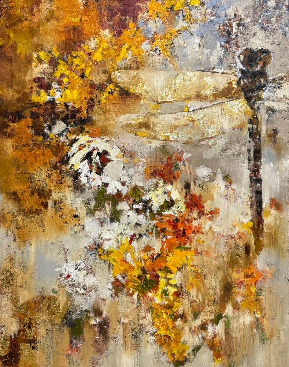 創作理念:繪畫多年希望能融入自己的風格,創造出詮釋的方法,畫裡要有裝飾性,但不是裝飾畫。融合中西貫穿