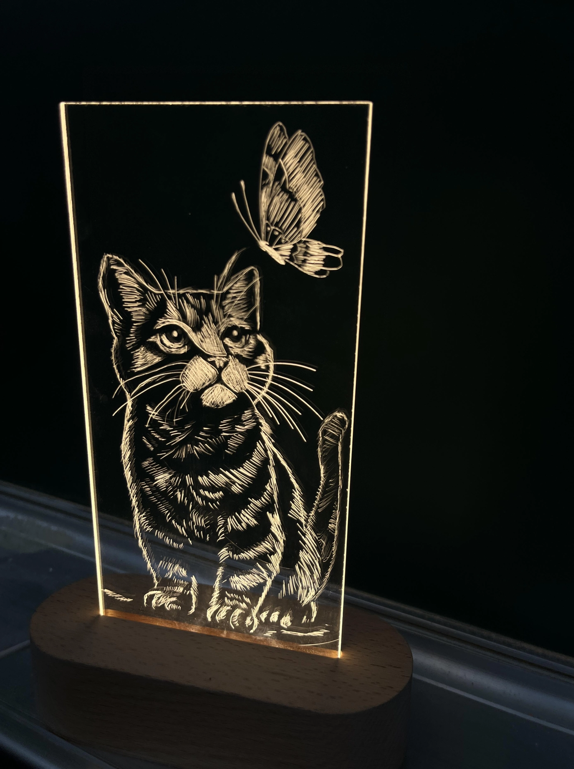 第一次做想說做貓咪因為喜歡貓咪然後家裡也有養蝴蝶是後來想到才刻的因為背景有點空想說要填滿一點很好玩!