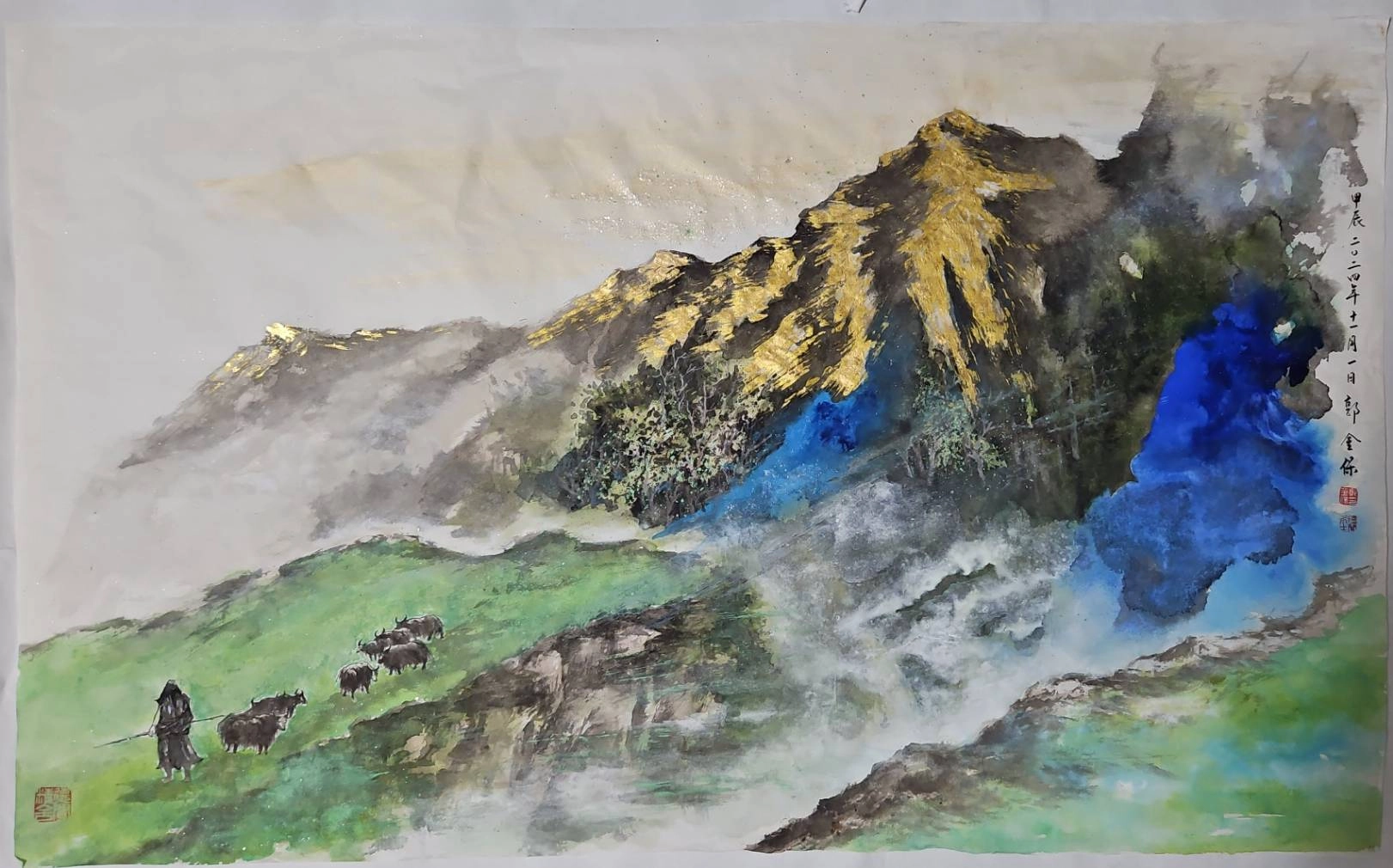 (本作品榮獲第五屆澳大利亞全國美術展覽為員會頒發優秀獎)作品簡介:汲古融新淡彩春之頌